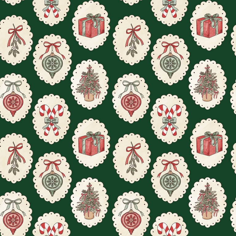 Vintage Christmas Ribbons is a festive surface pattern collection inspired by classic holiday imagery and traditional gift-wrapping details.