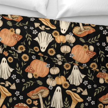 This collection features hand drawn mushrooms, whimsical fall flowers, charming pumpkins and adorable spooky ghosts. Perfect for seasonal decor, stationary, fabric and apparel.